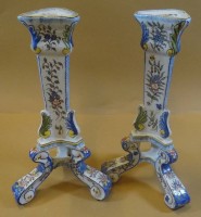 Leuchterpaar, Italien, aufgesetzte Blüten, minim. Chips, H-11cm.