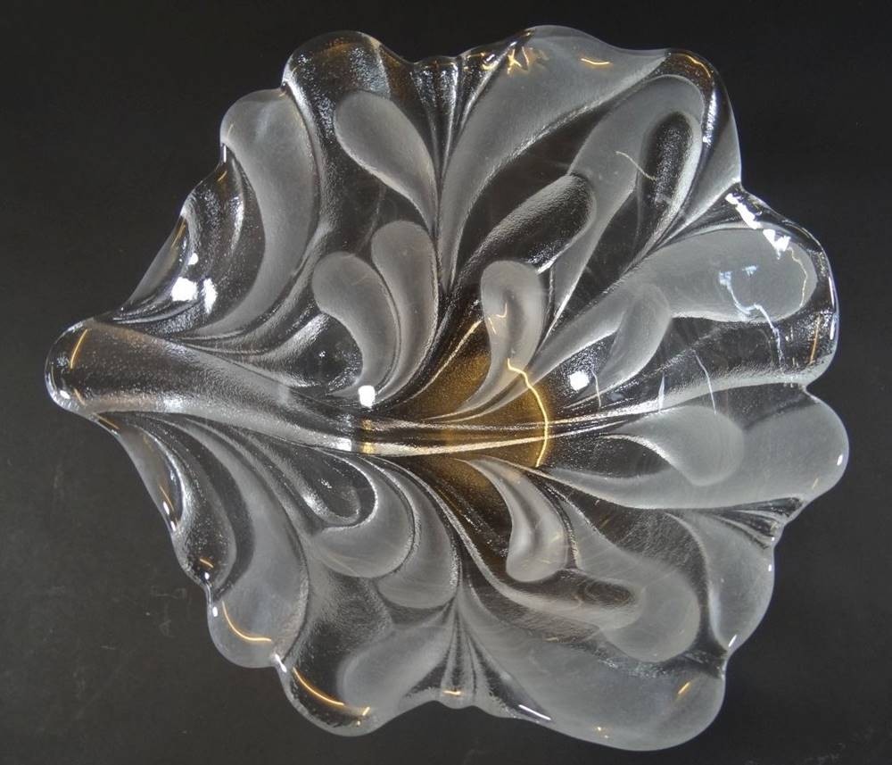 grosse, schwere Kristall-Blattschale und tiefe Schale, 45x30 cm und H-10 cm, D-23 cm