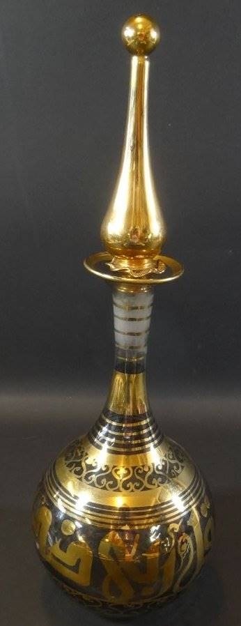 hoher Flacon, dünnes Glas mit Golddekor, wohl Bimini?, H-32 cm [1]