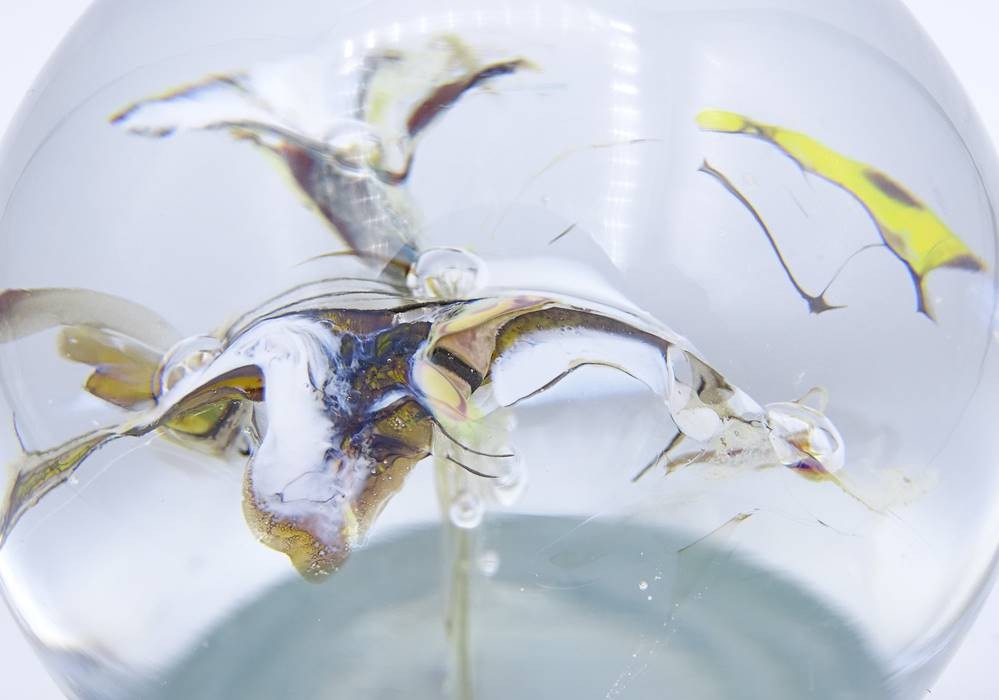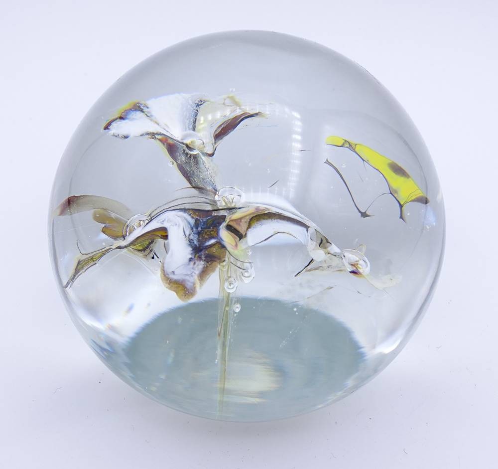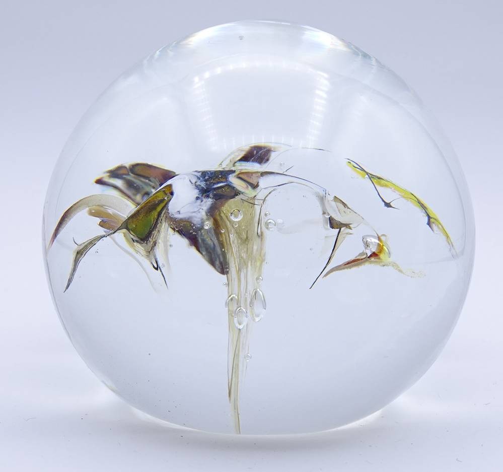 Paperweight mit weißen Einschmelzungen in Blütenform, H. 7,9cm [1]