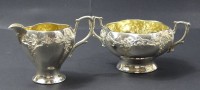 Sahnekännchen und Zuckerschale, 800er-Silber, H. 7,5 und 8,5 cm, gepunzt: "P. Kerfack, Rostock", Ähre? und Krone, zus. 221 gr., kleine Kratzer und leichte Verunreinigungen