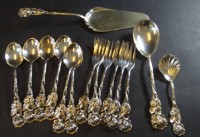 Kaffeebesteck C.Widmann, versilbert, 6x Kaffeelöffel, 6x Kuchengabeln, Tortenheber, Sahnelöffel, Zuckerlöffel