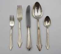 WMF Besteck f. 6 Personen, versilbert, mit 6 Vorlegeteilen, insg. 30 tlg.eine Messerklinge beschädigt