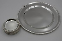 Platzteller und 8 Untersetzer, versilbert, D-29cm und 10cm.