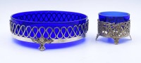 Gewürzschälchen und Anbietschale mit Silberstand, blaue Glas Einsätze, D. 5,0 - 12,5cm