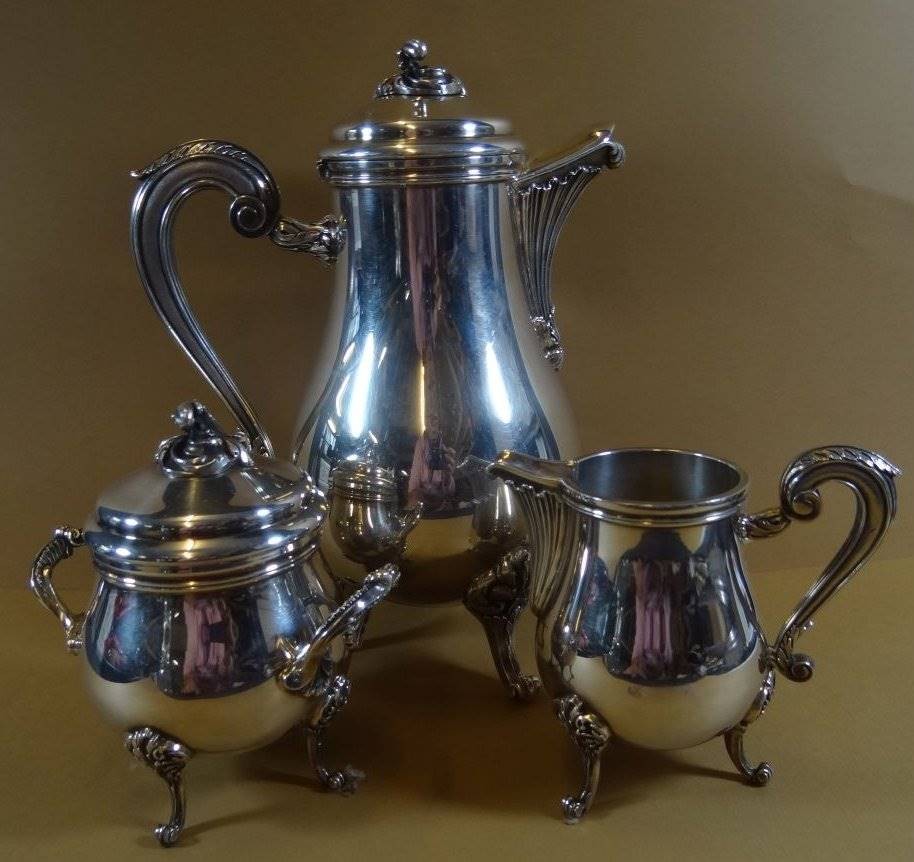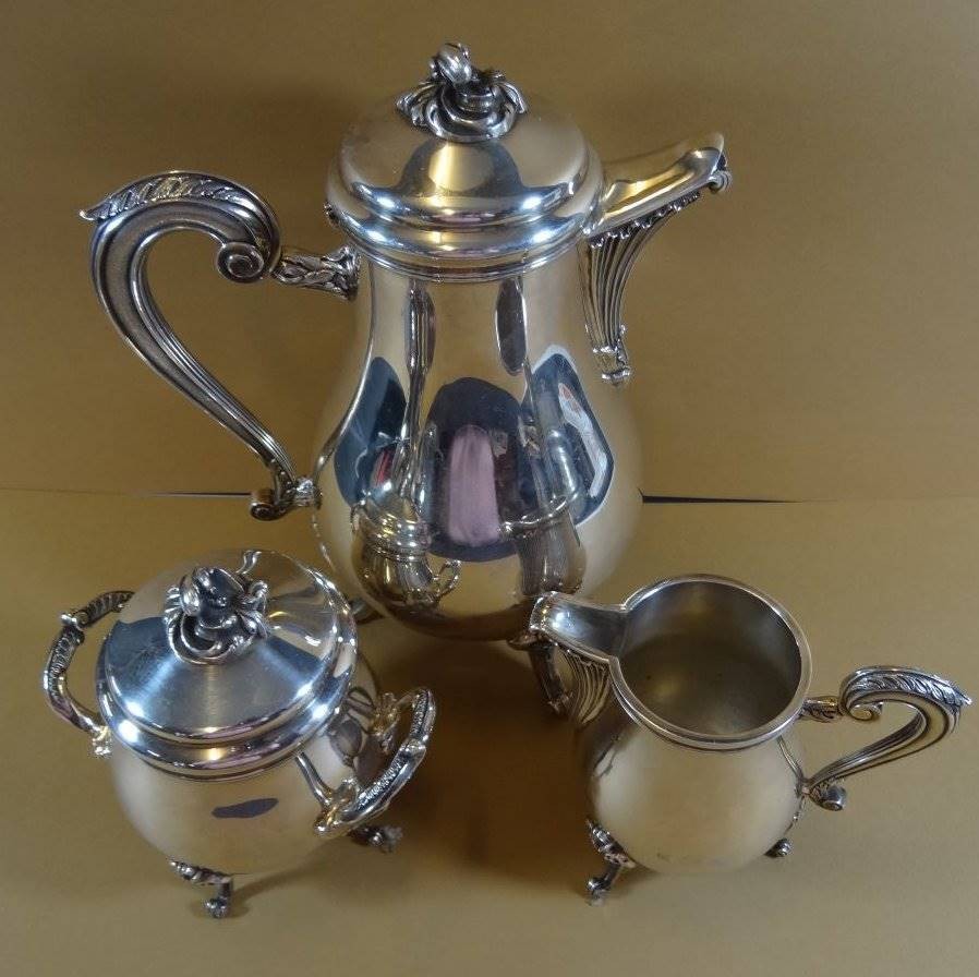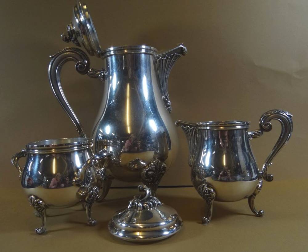 3 tg. Kaffeeset, "Christofle" France, versilbert, H-25 cm, sehr gut erhalten [1]