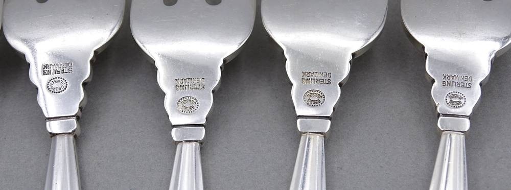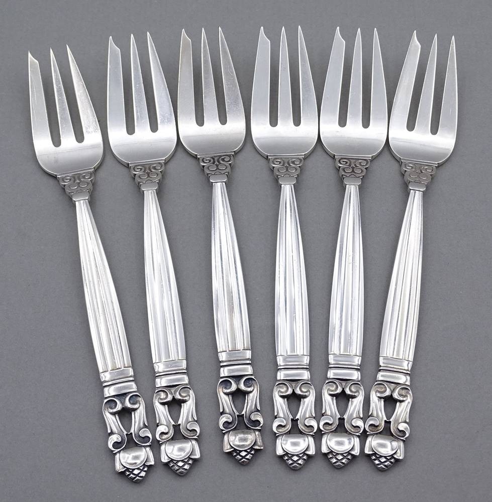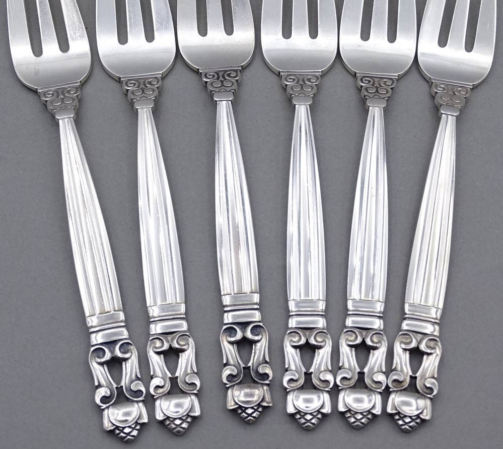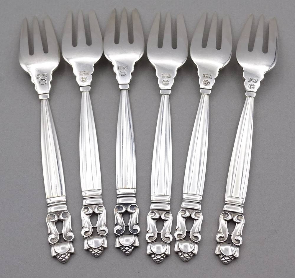 6 Acorn Kuchengabeln "Georg Jensen" , Denmark, Sterling Silber 0.925 L. 14,3cm, zus. 163,7g. [1]