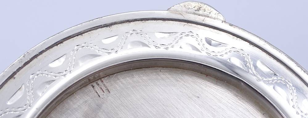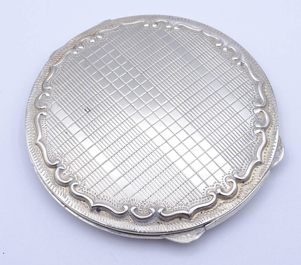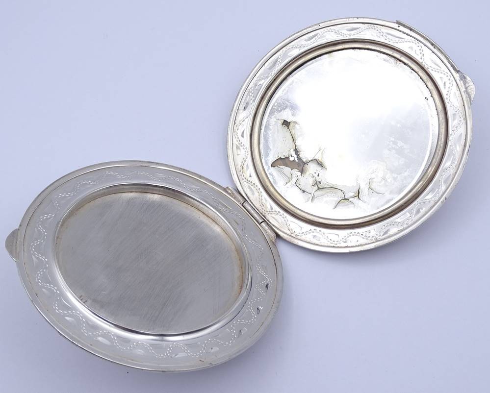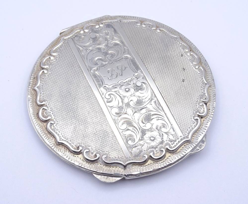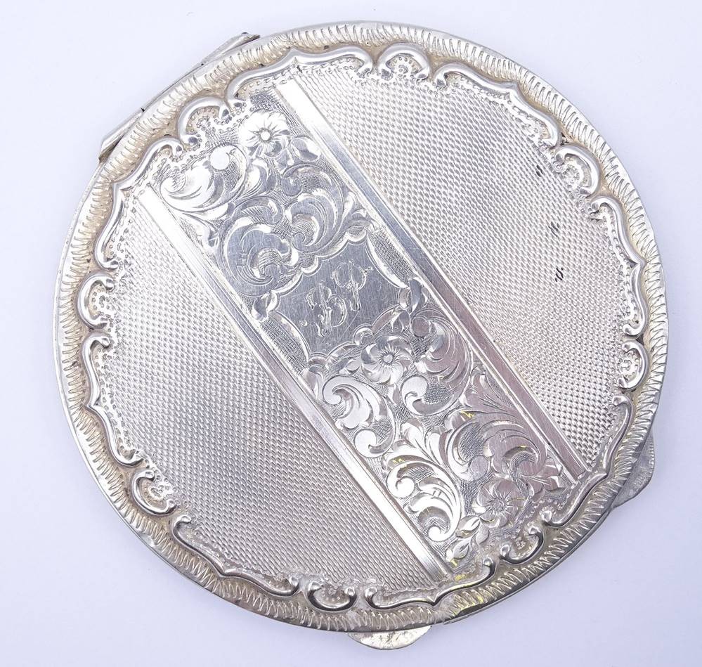 Alte Puderdose, Silber 0.800, Spiegel defekt, mit Monogramm B.P., D. 83mm, 99,5g. [1]