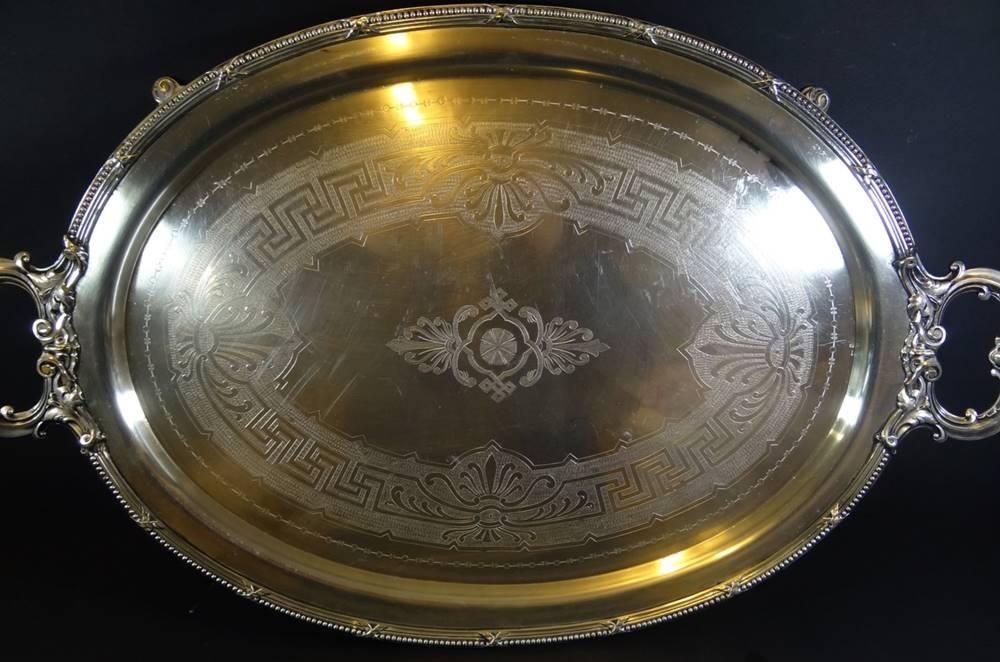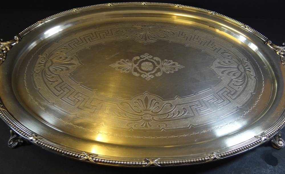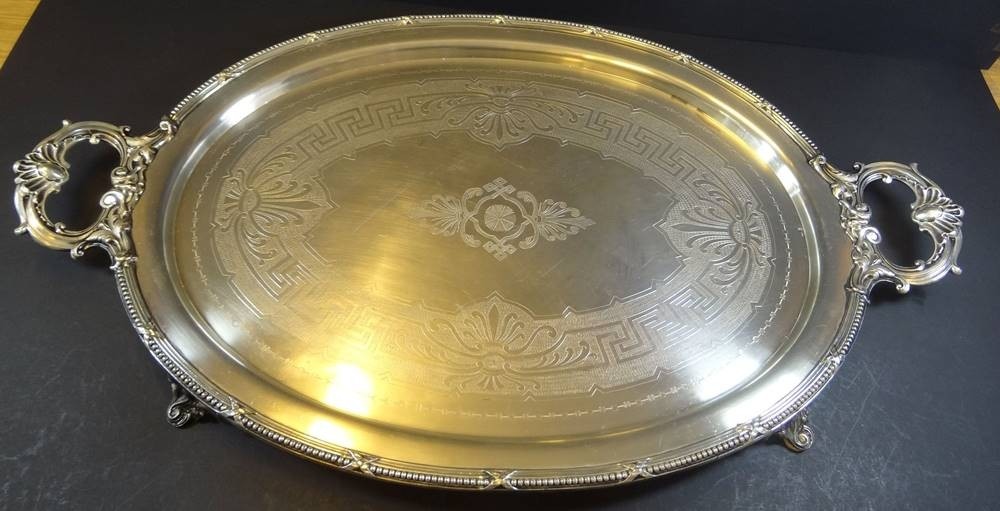 grosses versilbertes Serviertablett "Jürst&Co" Berlin um 1940, 78x47 cm, 4 kg!, gut erhalten [1]