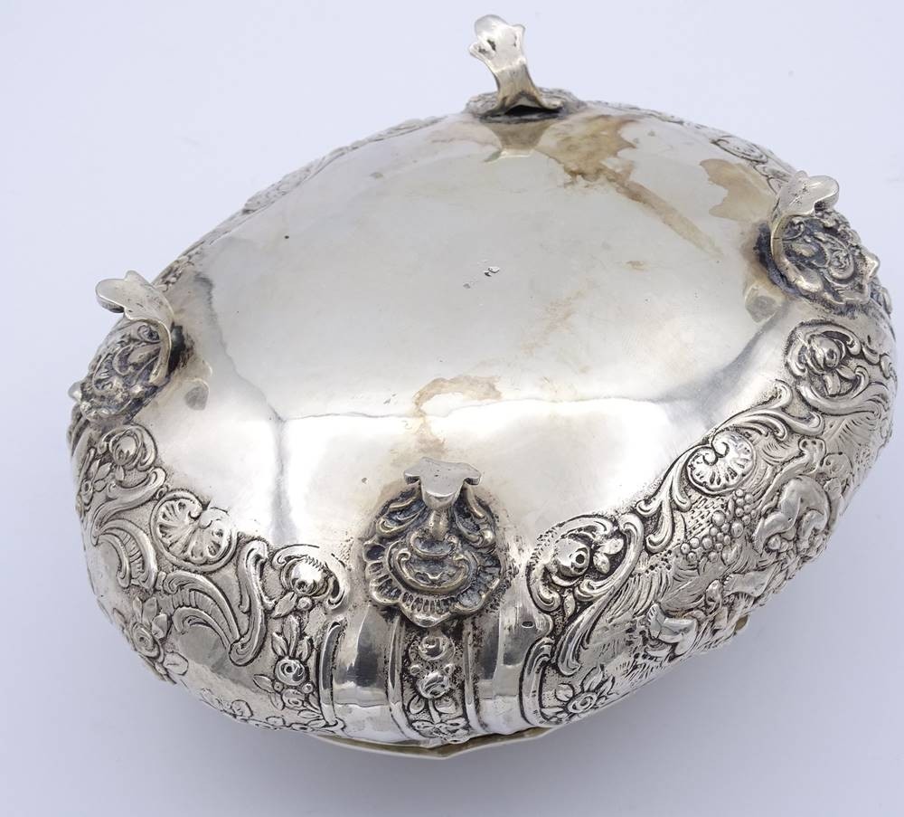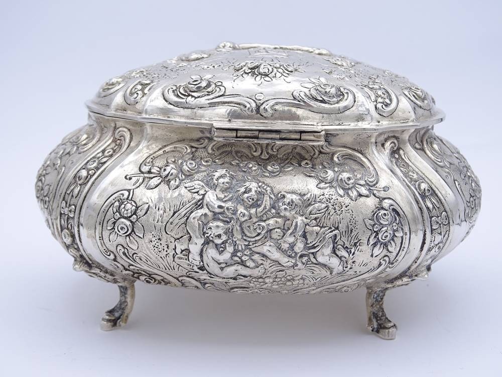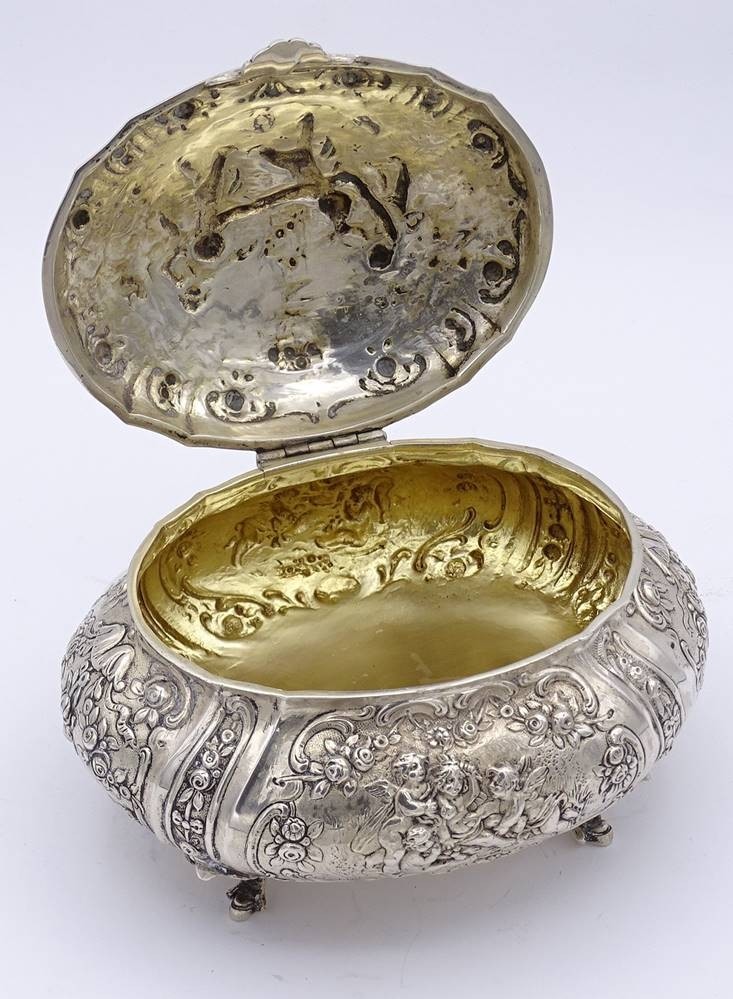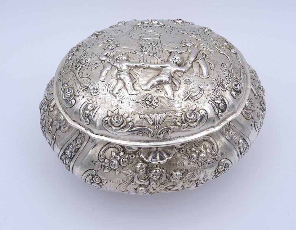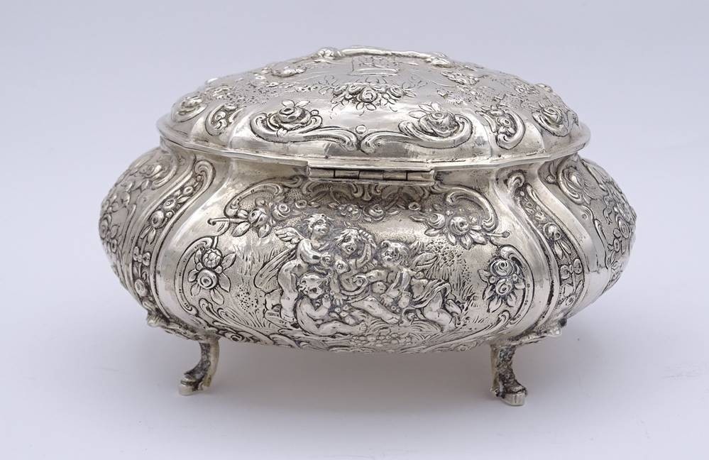Schöne verzierte Zuckerdose , Silber 0.800, 320g., 14,5 x 12cm, H. 9,5cm [1]