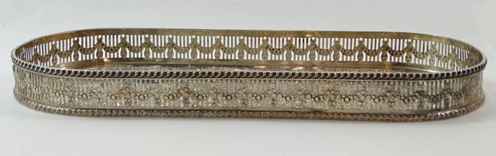 Losnummer 4003 - Versilbertes Kupfertablett, Viners of Sheffield, 33,5 x 13,2 x 3,2 cm, leichte Alters- und Gebrauchsspuren