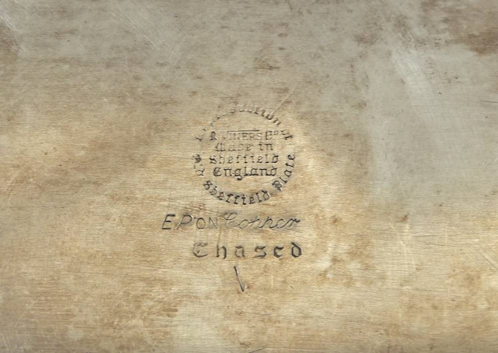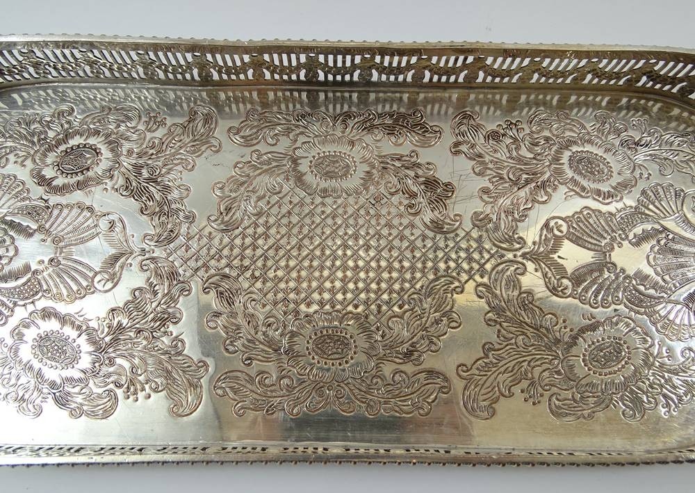 Versilbertes Kupfertablett, Viners of Sheffield, 33,5 x 13,2 x 3,2 cm, leichte Alters- und Gebrauchsspuren [1]