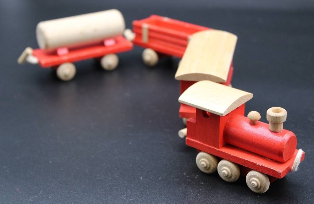 Losnummer 7017 - kl. Holz-Eisenbahn, Sigikid, ca. L-40cm.