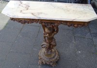 Konsolentischchen mit Putto, Marmorplatte, H-81 cm, -81 cm, T-28 cm