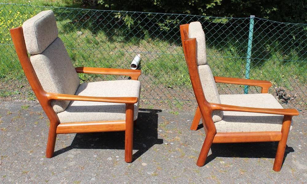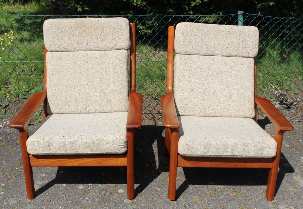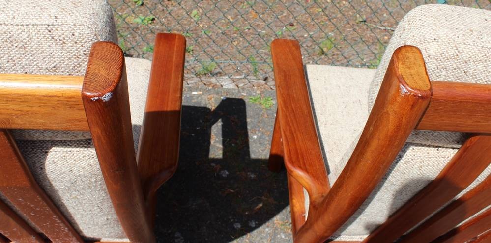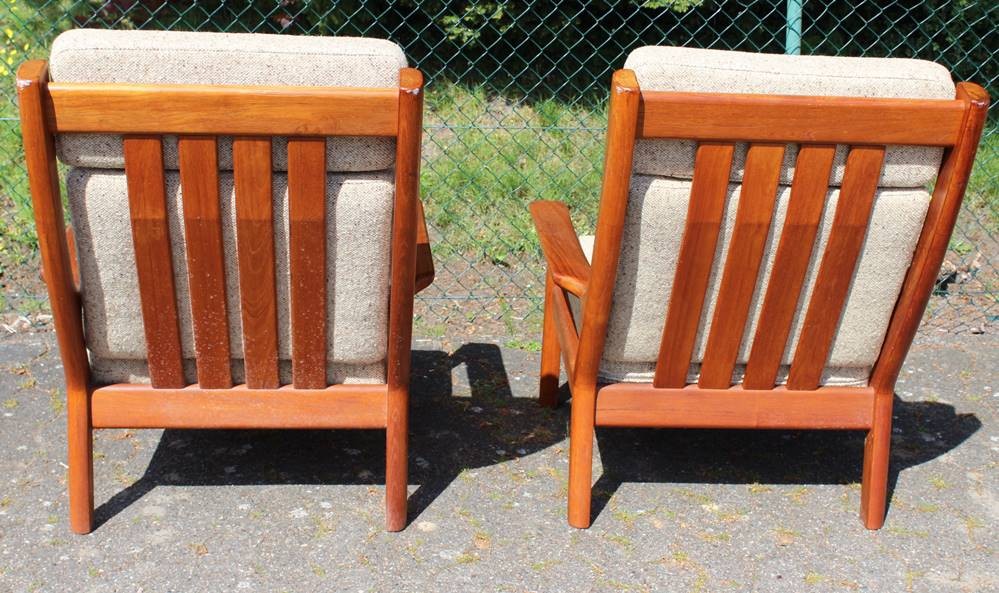 2x gr. Armlehnsessel, gemarkt "Glostrup Danmark", Teak, wohl 60er Jahre, H-98cm B-68cm Sh- 42cm [1]