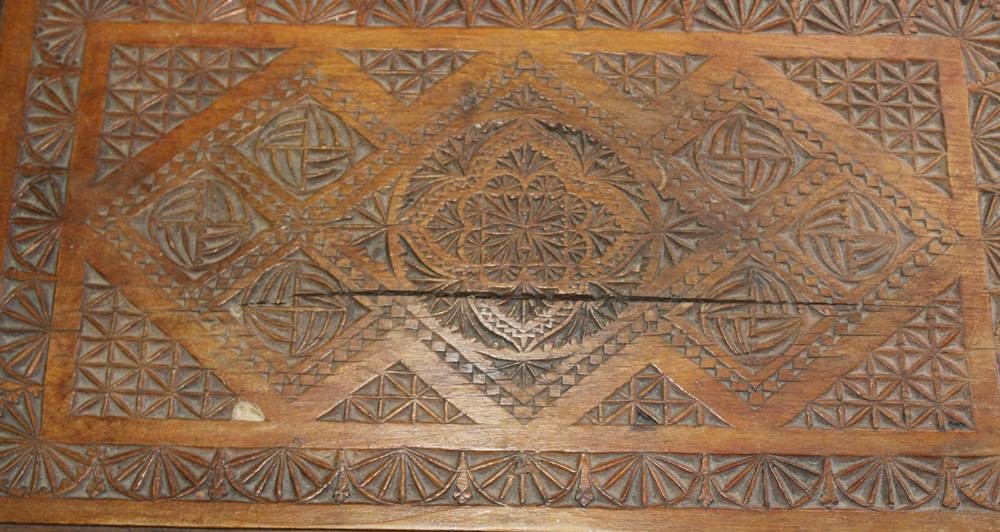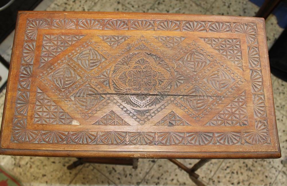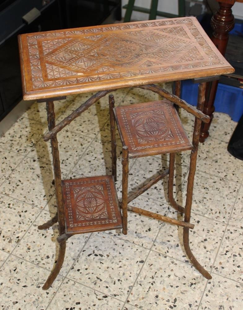 Blumenständer, Kerbschnitzerei, älter, oberste Platte mit Riss, H-72cm B-42cm T-24cm. [1]