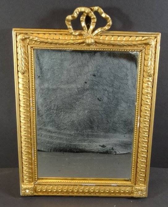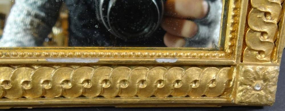 kleiner, alter Wandspiegel, fleckig, Rahmen Gebrauchsspuren. 32x23 cm [1]