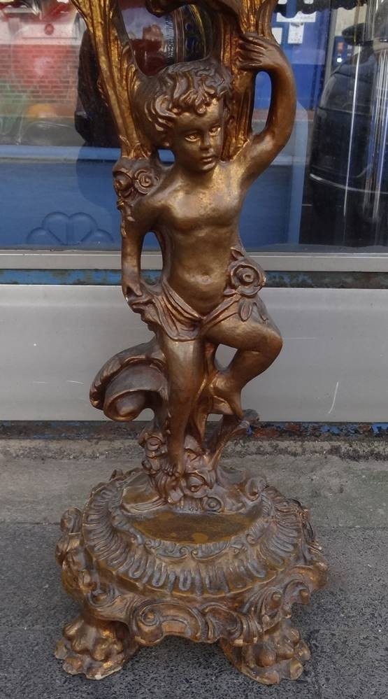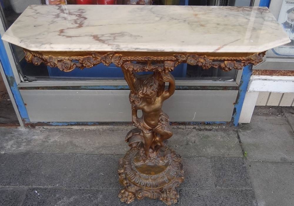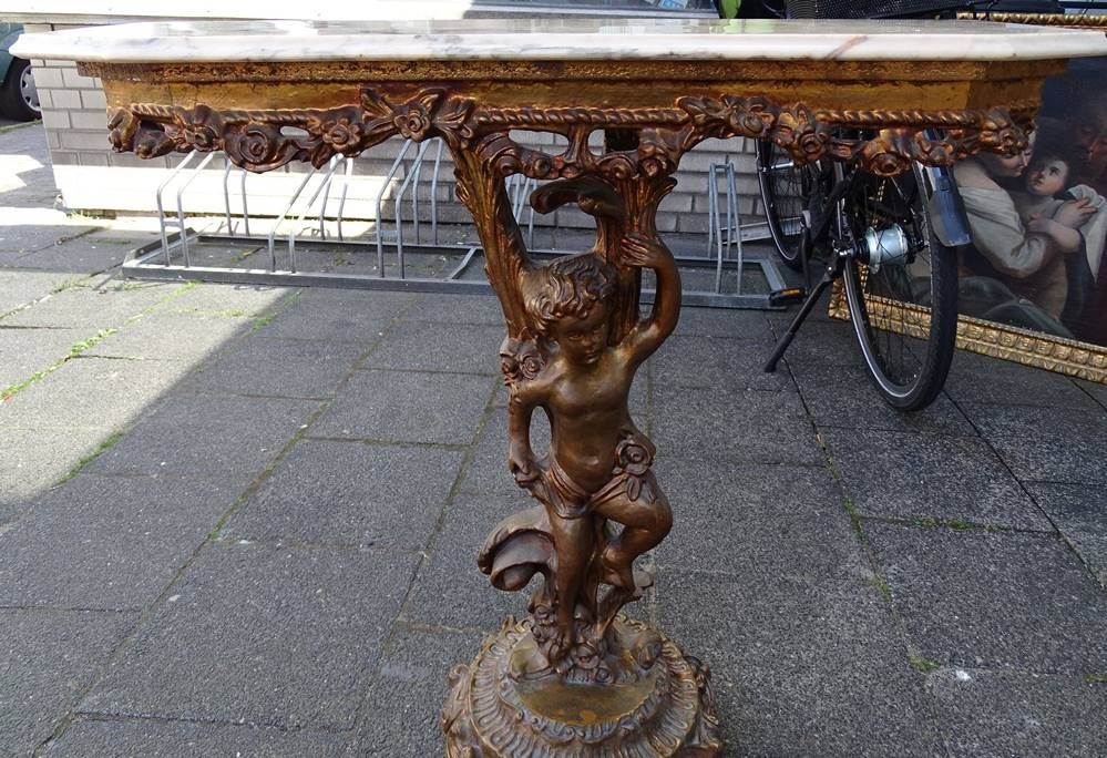 Konsolentischchen mit Putto, Marmorplatte, H-81 cm, -81 cm, T-28 cm