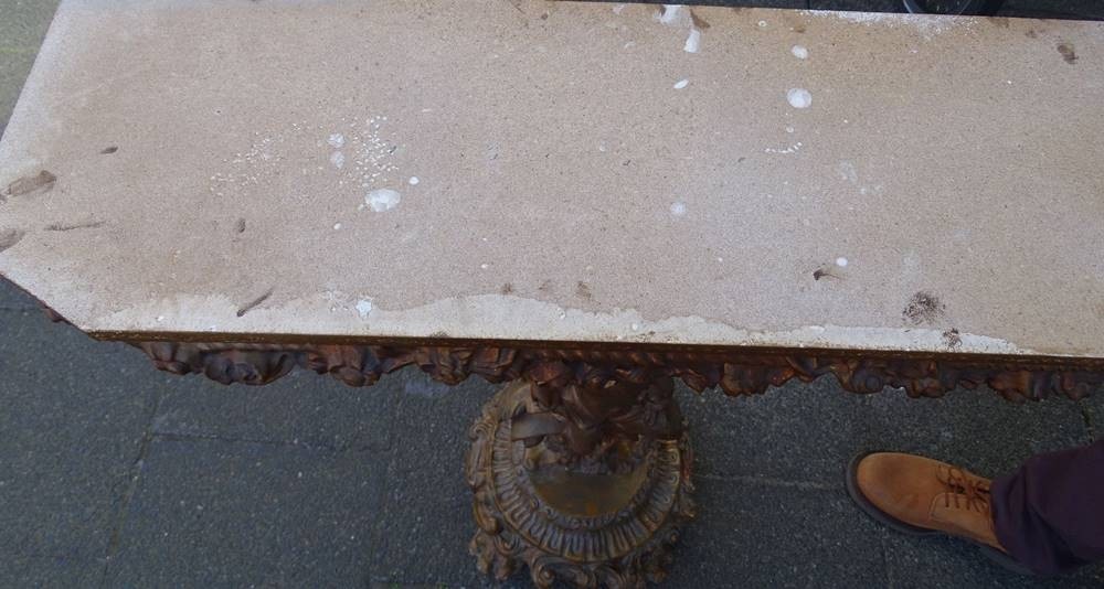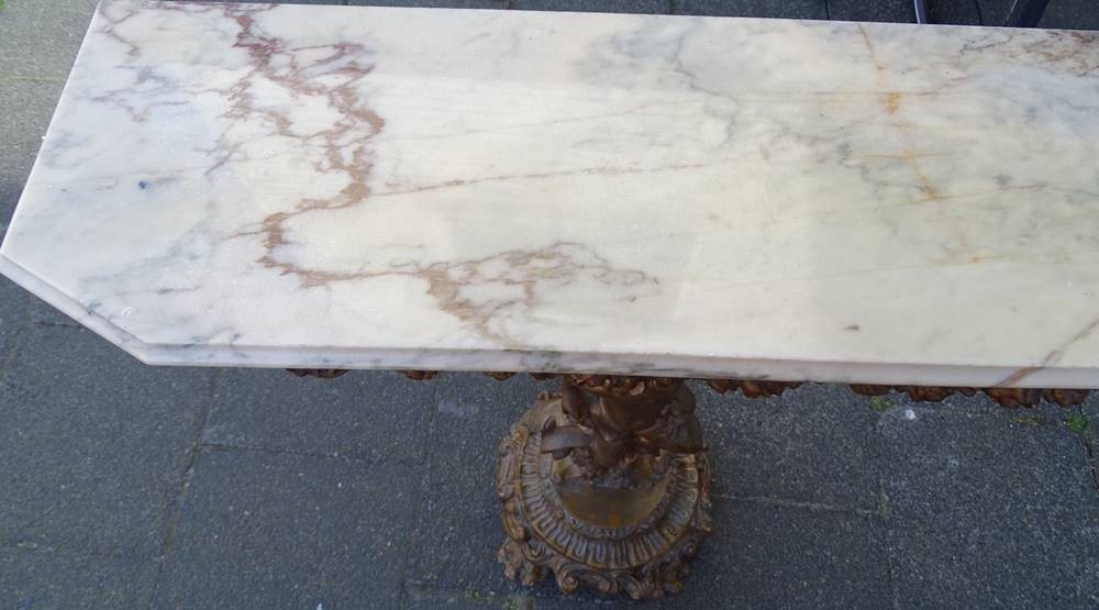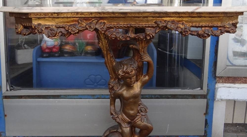 Konsolentischchen mit Putto, Marmorplatte, H-81 cm, -81 cm, T-28 cm [1]
