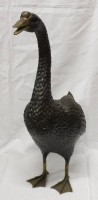 hohe Skulptur einer Gans, wohl Messing teilw. geschwärzt, H-75cm.