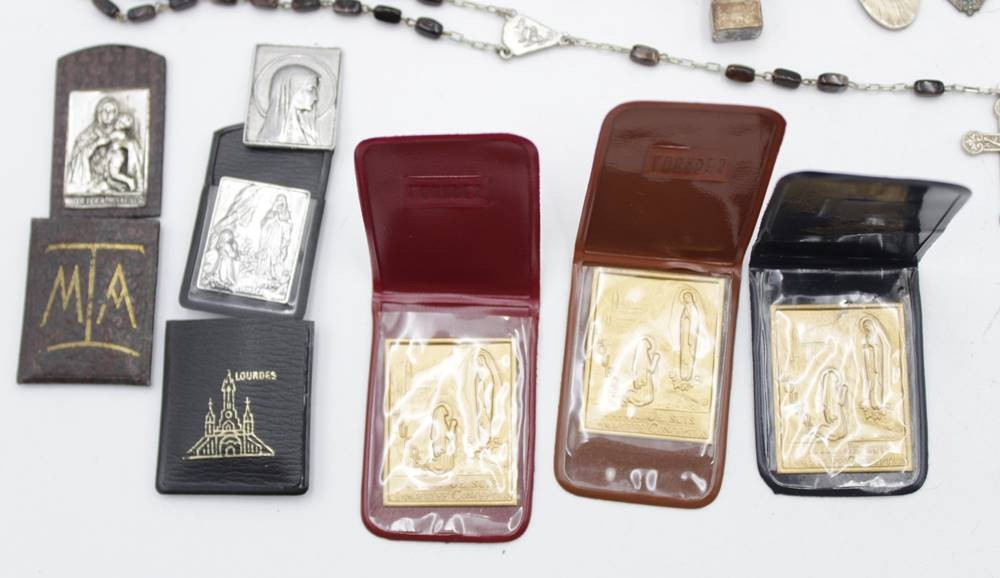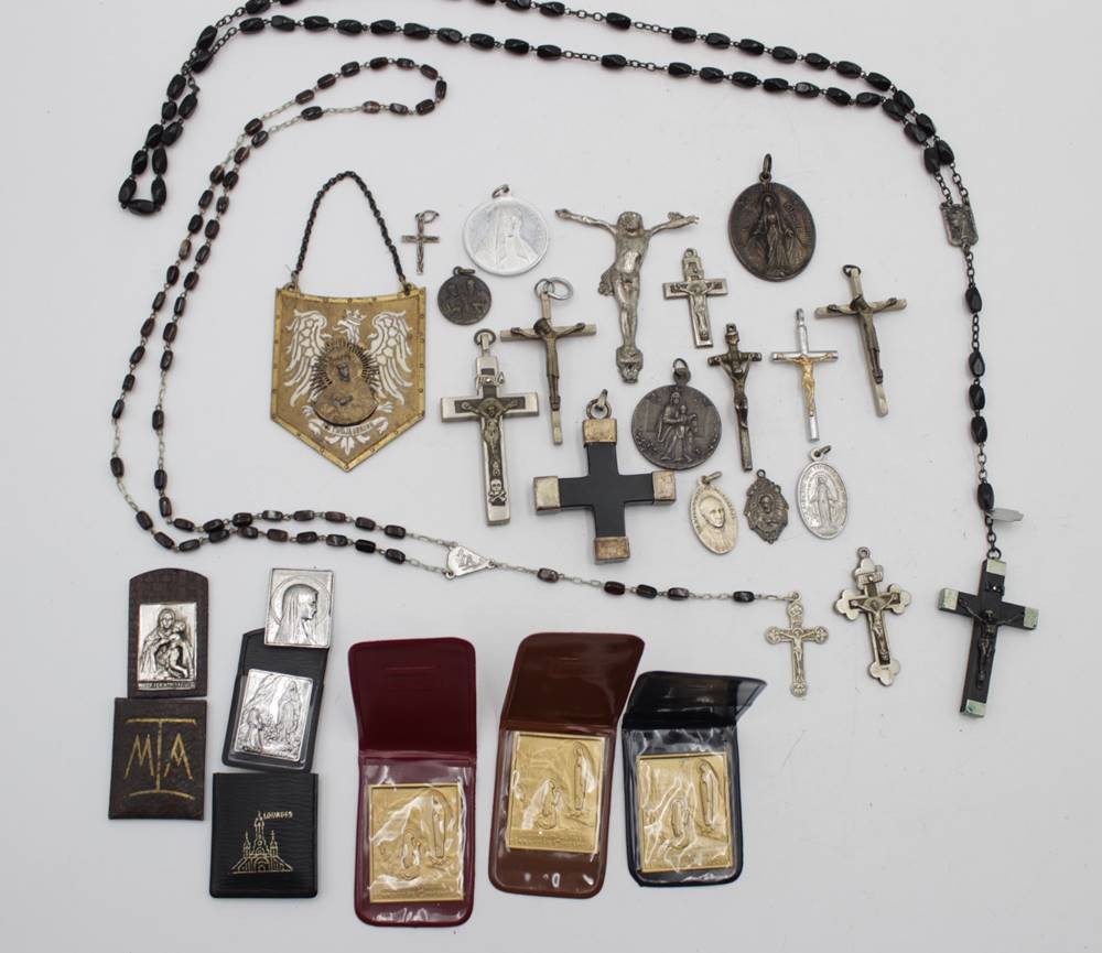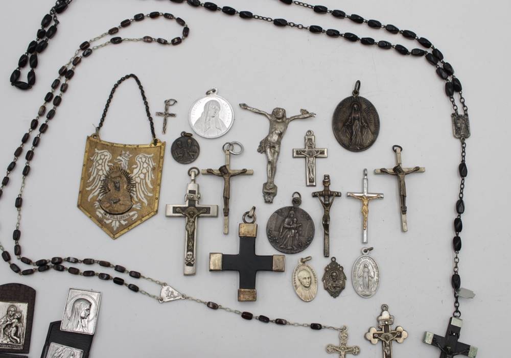 christliches Konvolut, Kreuze, Rosenkränze etc. , gr. Kreuz L-5,7cm. [1]