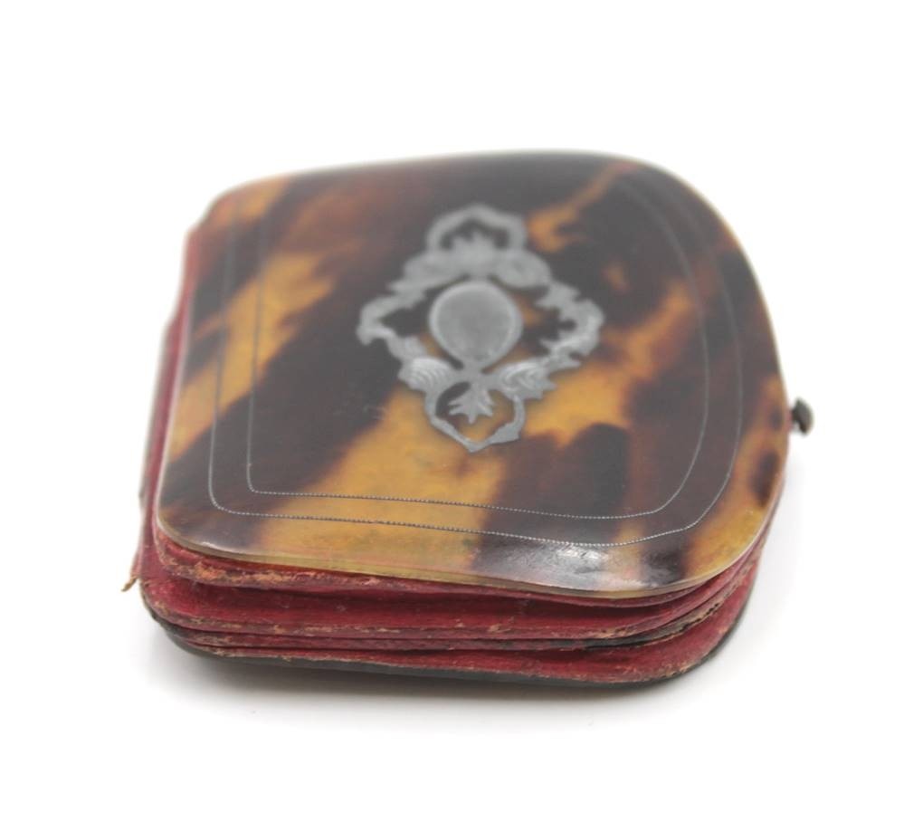 Geldbörse, 19. Jhd., Schildpatt, silberfarbene Auflage, Alters-u. Gebrauchsspuren, ca. 6 x 7,5cm. [1]