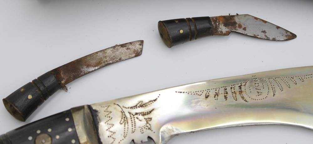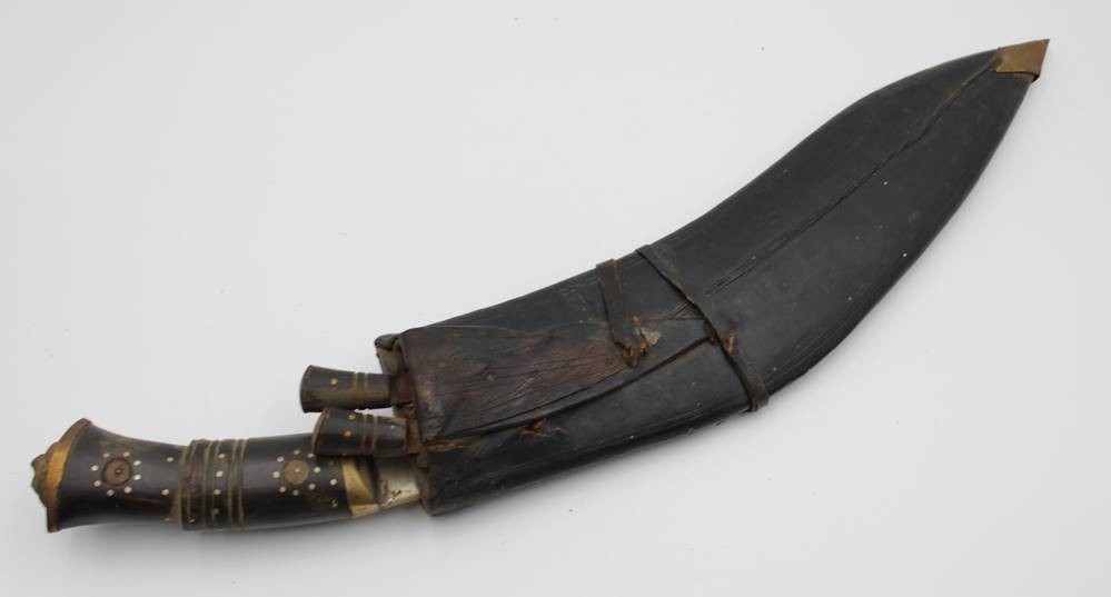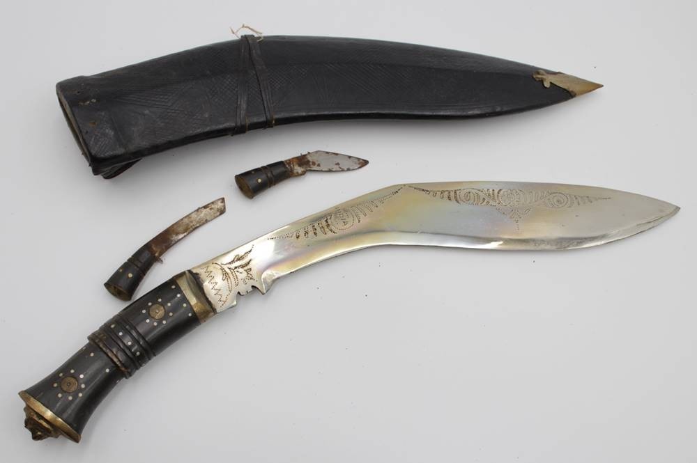 Kukri, Indien, älter, anbei 2 kl. Beimesser, Altersspuren, ca. L-53cm. [1]
