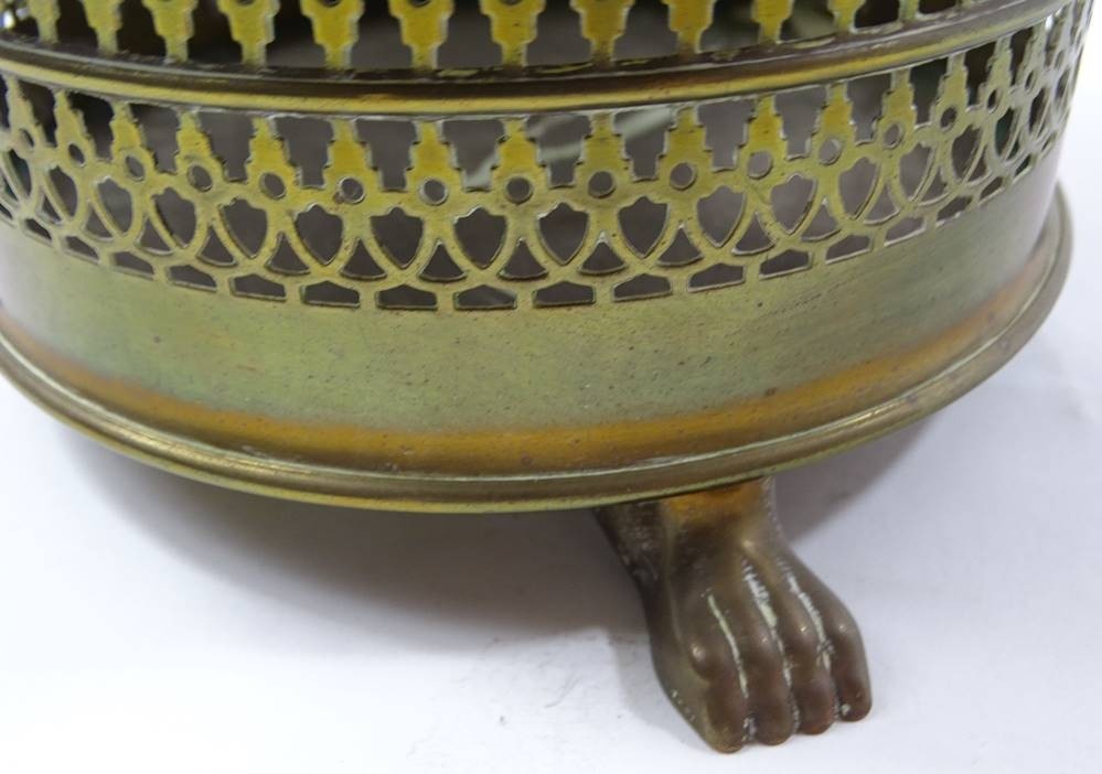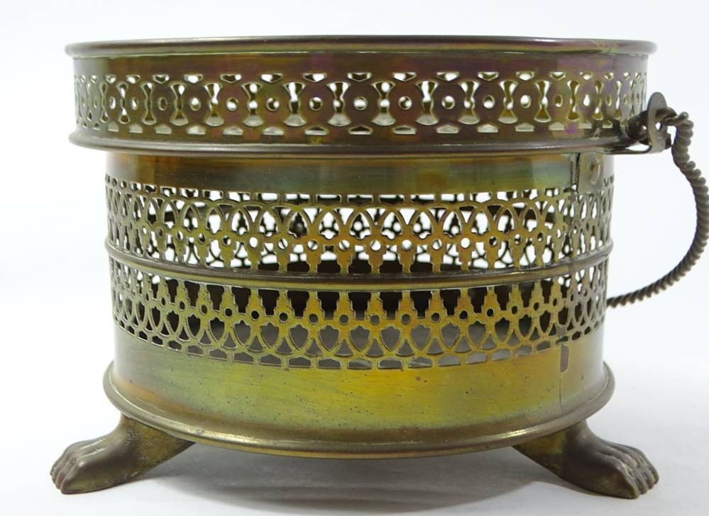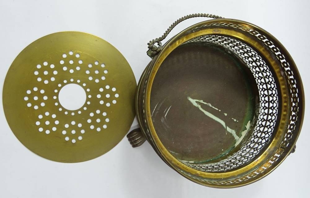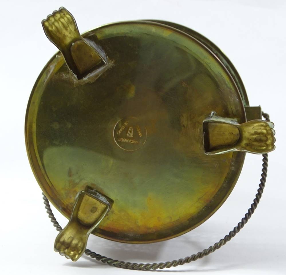 Losnummer 10204 - Stövchen aus Messing, Handarbeit, H. 9,7 cm, Ø 13,7 cm, leichte Altersspuren