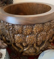 übergrosser Holz-Blumentopf oder ähnliches, beschnitzt, wohl China?, H-46cm Innen D-37cm.