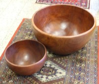 Paar gr. Holz-Schalen, Tropenholz, ca. H-30cm D-51cm und H-18cm D-30cm.