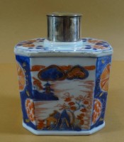 Teedose, China, älter mit versilberten Deckel, etwas zu gross, wohl nicht original?, H-11,5 cm, B-9 cm, T-6 cm