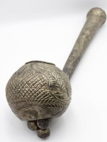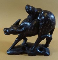 Wasserbüffel-Reiter mit Silberdraht-Einlagen, ein Auge fehlt, H-14 cm, L-13 cm