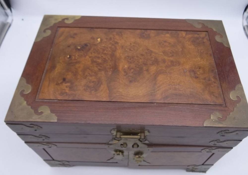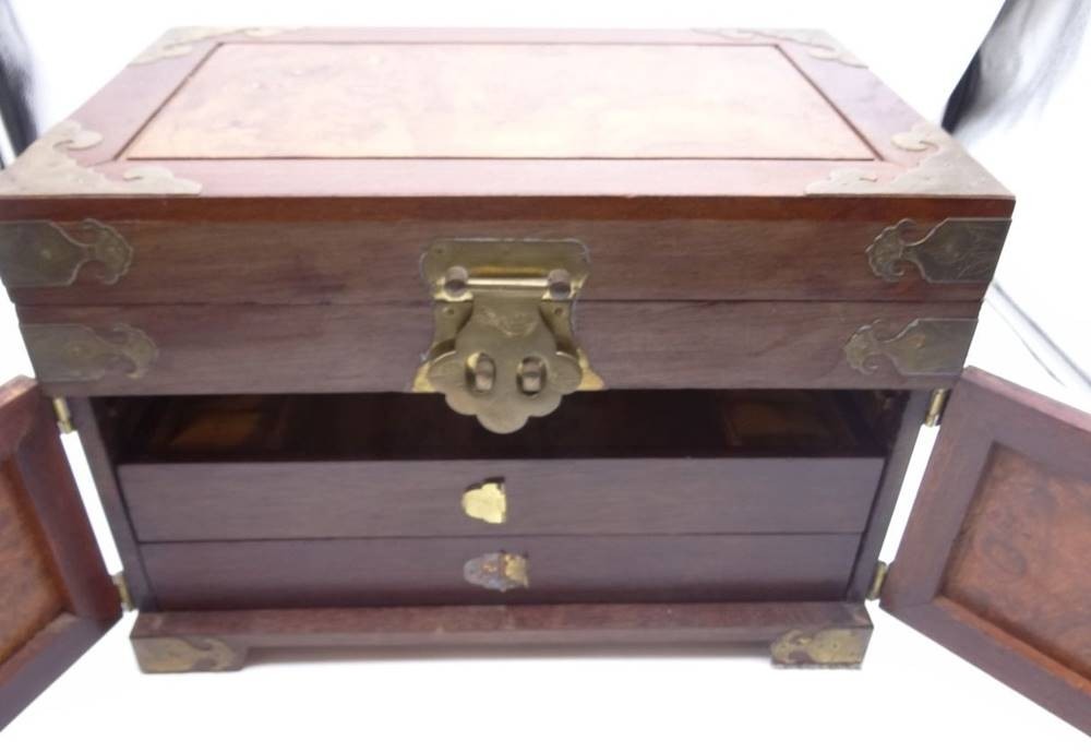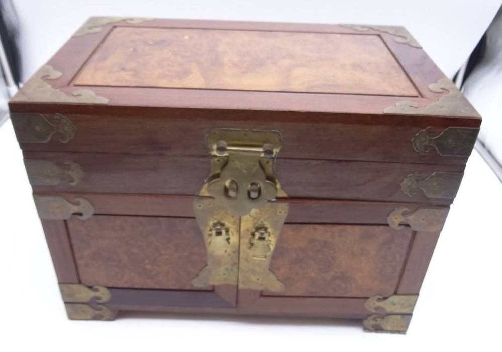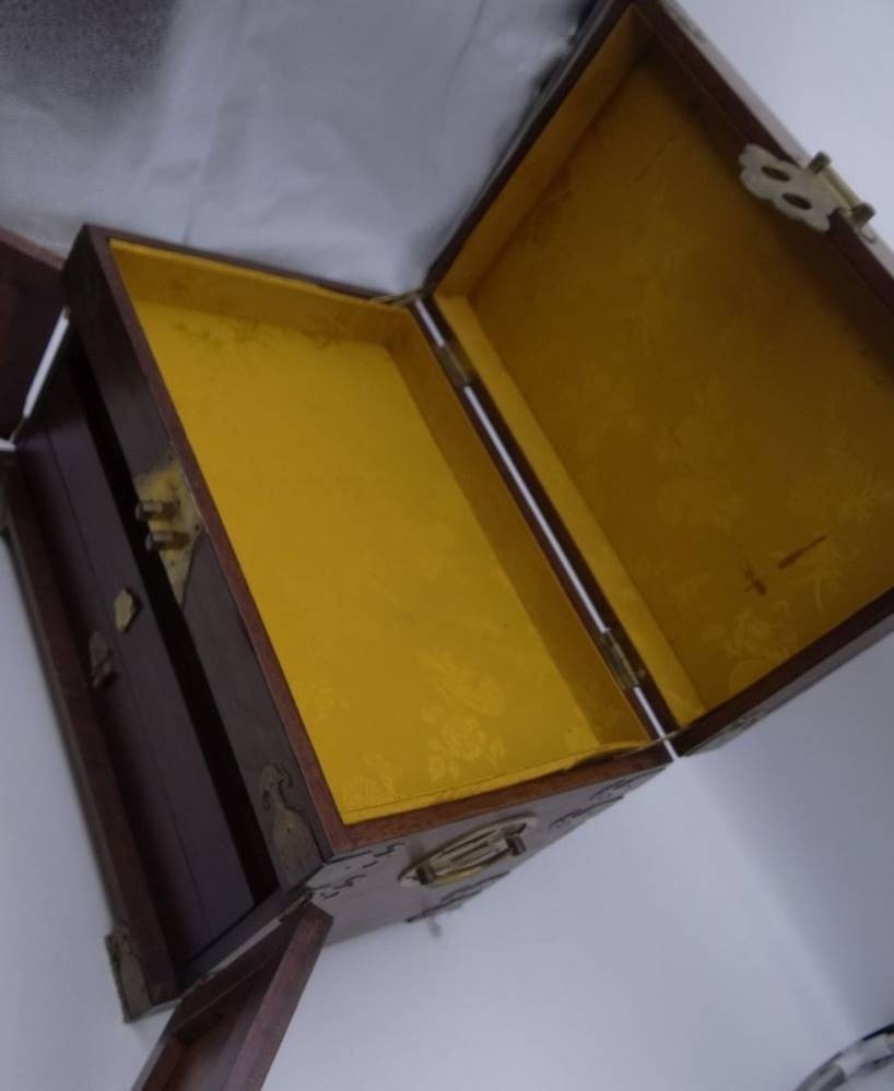 gr. Schmuckkasten, China, Messingbeschläge, 1 Schublade fehlt, H-25 cm, 35,5x22,5 cm [1]