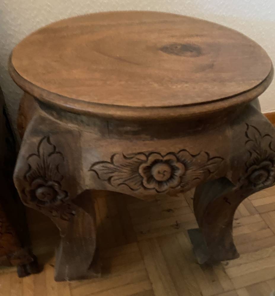 massiver Blumenhocker, beschnitzt, ca. H-42cm D-40cm.