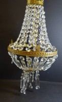 Empire-Lüster, Metall und Glas, L. ca. 70 cm, einzelne Glassteine fehlen, einige Stränge lose, aber leicht wieder zu befestigen, Funktion nicht geprüft