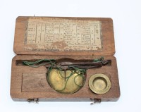 Feinwaage in Kasten mit div. Zubehör, aufgebaut ca. H-32cm B-26cm.