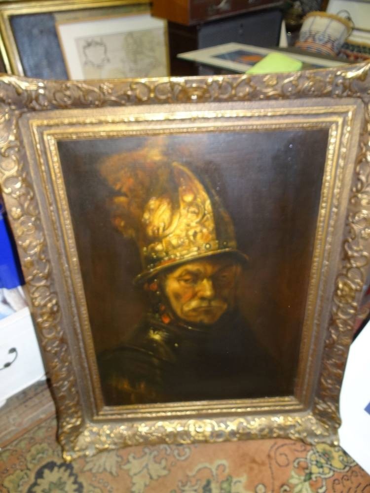 Brita VON SYDOW-SÖDÖÖ (1884-1959) "Der Mann mit dem Goldhelm, Copie nach Rembrandt, Öl/Leinen, gut gerashmt, RG 86x68 cm [1]