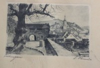 L.Rem..., Ansicht Tutingen, Radierung, ger./Glas, RG 19,5 x 25,5cm.