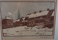 unleserl.signiert, Königsberg, Radierung, Widmungsschild von 1926, ger./Glas, RG 36 x 29cm.