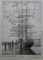 Heinz Wehlisch, Radierung, Ansicht Cuxhaven um 1910, gerahmt/Glas, RG 32,5 x 42,5cm.