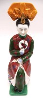 sitzende Adlige Dame mit Handspiegel, bemalt, China, Keramik, H-27 cm