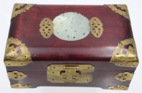 schöner Schmuckkasten, China, Messingbeschläge, Deckel wohl mit Jade-Einlage, guter Zustand, H-8,5cm B-17,5cm T-12cm