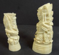 2x kl. Knochenschnitzereien, Tempellöwen, H-7 und 6 cm, Asien