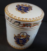 gr. Deckeldose mit Wappenmalerei, wohl Tabaksdose, chines. gemarkt, wohl 19.Jhd., H-16 cm, D-13,5 cm, rote Marke