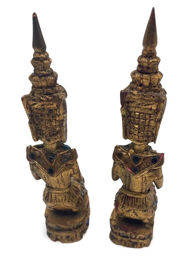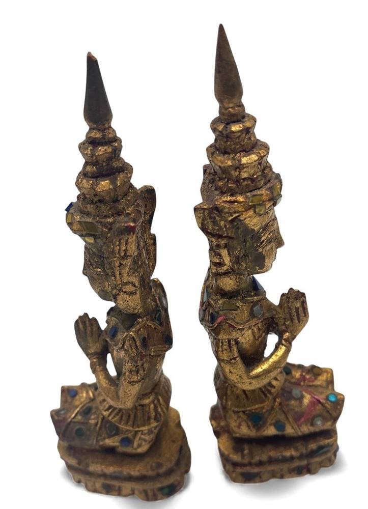 2 betende Buddhas, Holz vergoldet mit Glasstückchen, H-20 cm [1]