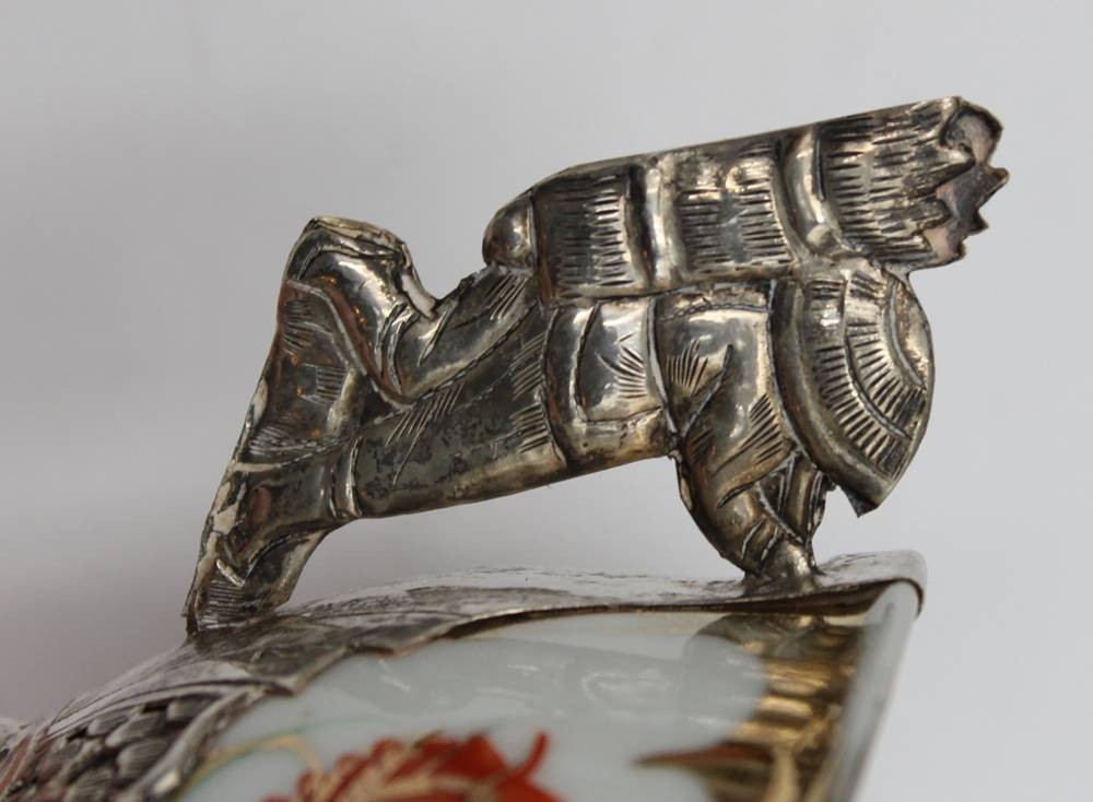2 Teetassen mit versilberter Montur und U.T. , Vietnam, in Kasten, handbemalöt, 1 Tasse mit Chip [1]
