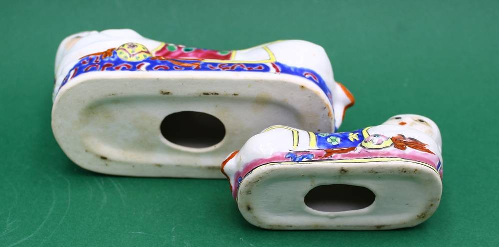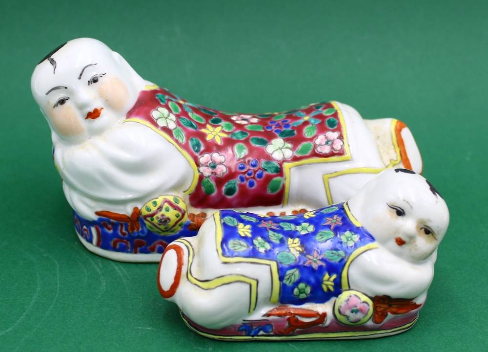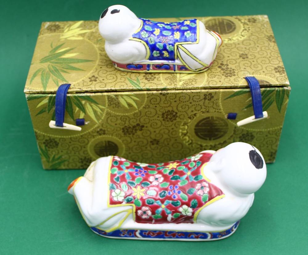 2x chinesische Kissenfigur, handbemalt aus Porzellan, H- 9cm B- 15cm (in Box) [1]