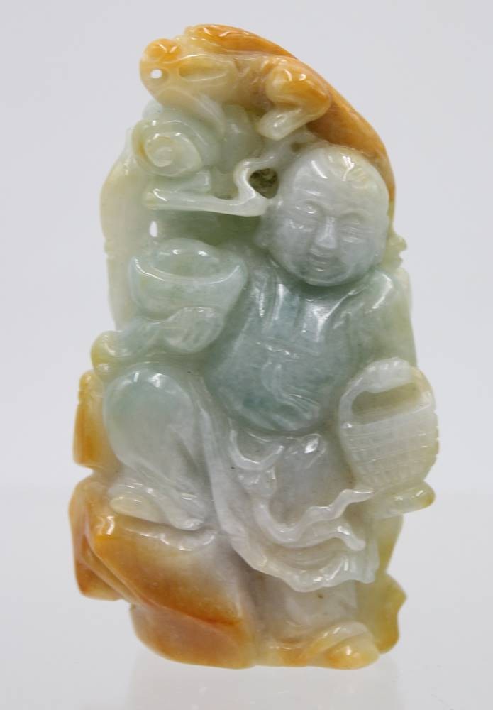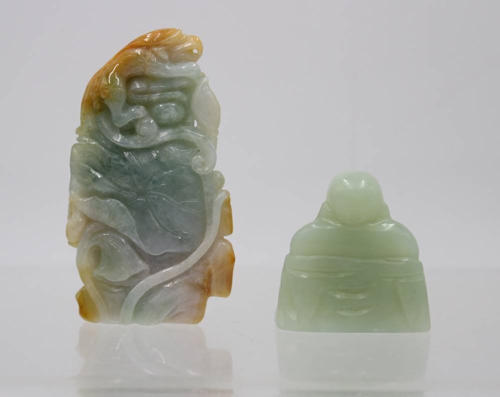 2x div. kl. Jadefiguren, China, ca. H-8,5cm u. H-4,5cm [1]