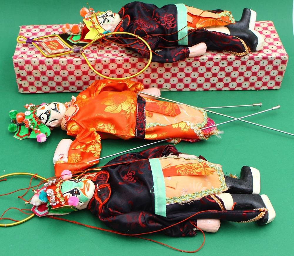 3x chinesische Marionetten (Opern-Figuren), max. H- 27cm (je in Schachtel) [1]