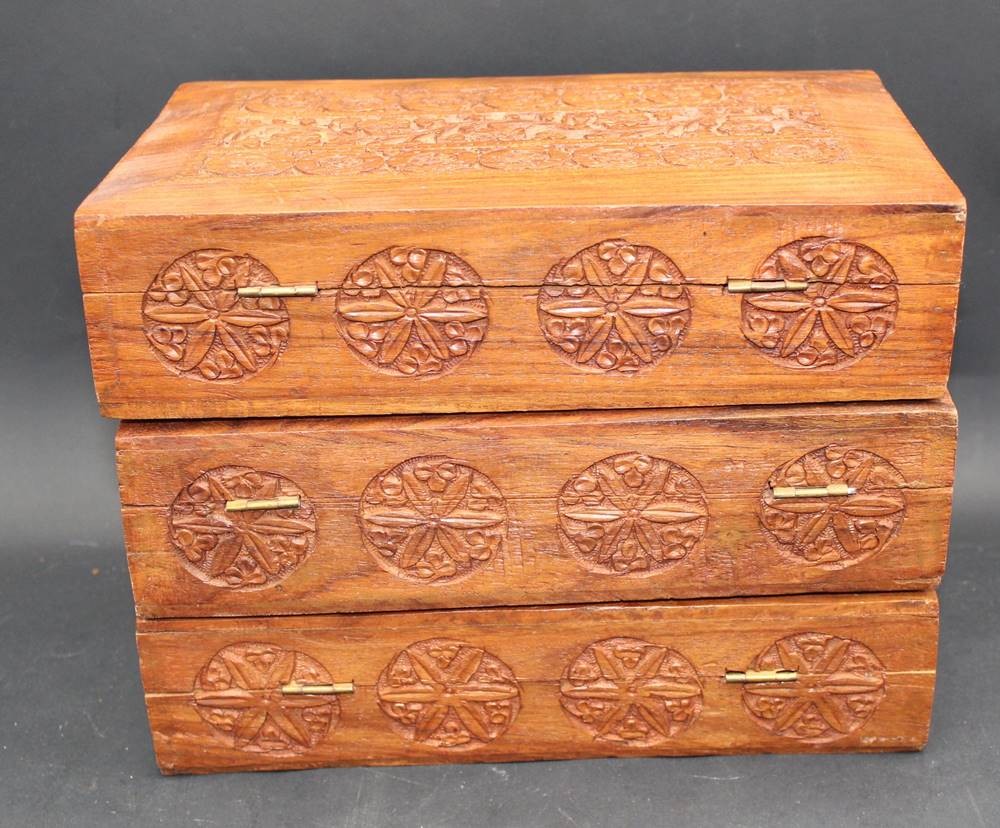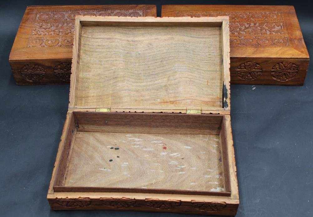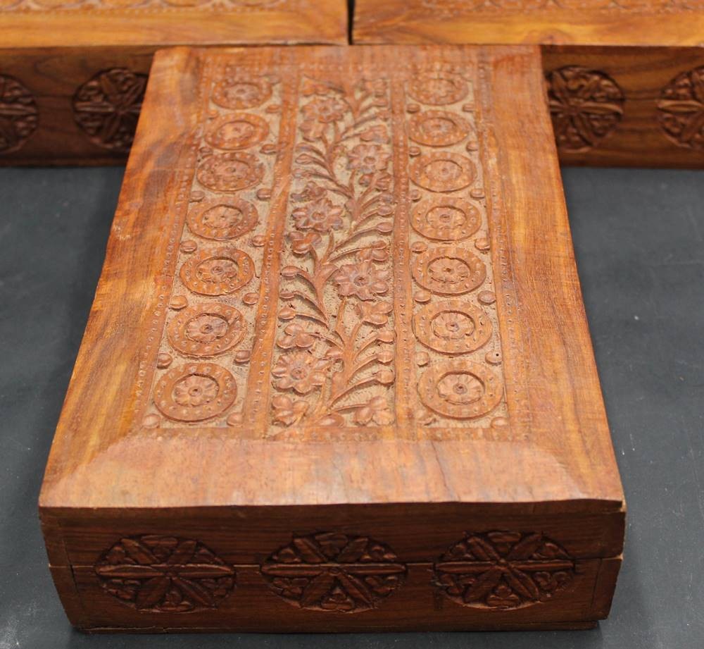 3x gr. Holzkästen, Shishan Schnitzerei, Indien, je. H-7 cm, 28x17 cm [1]